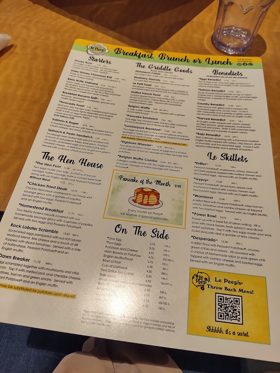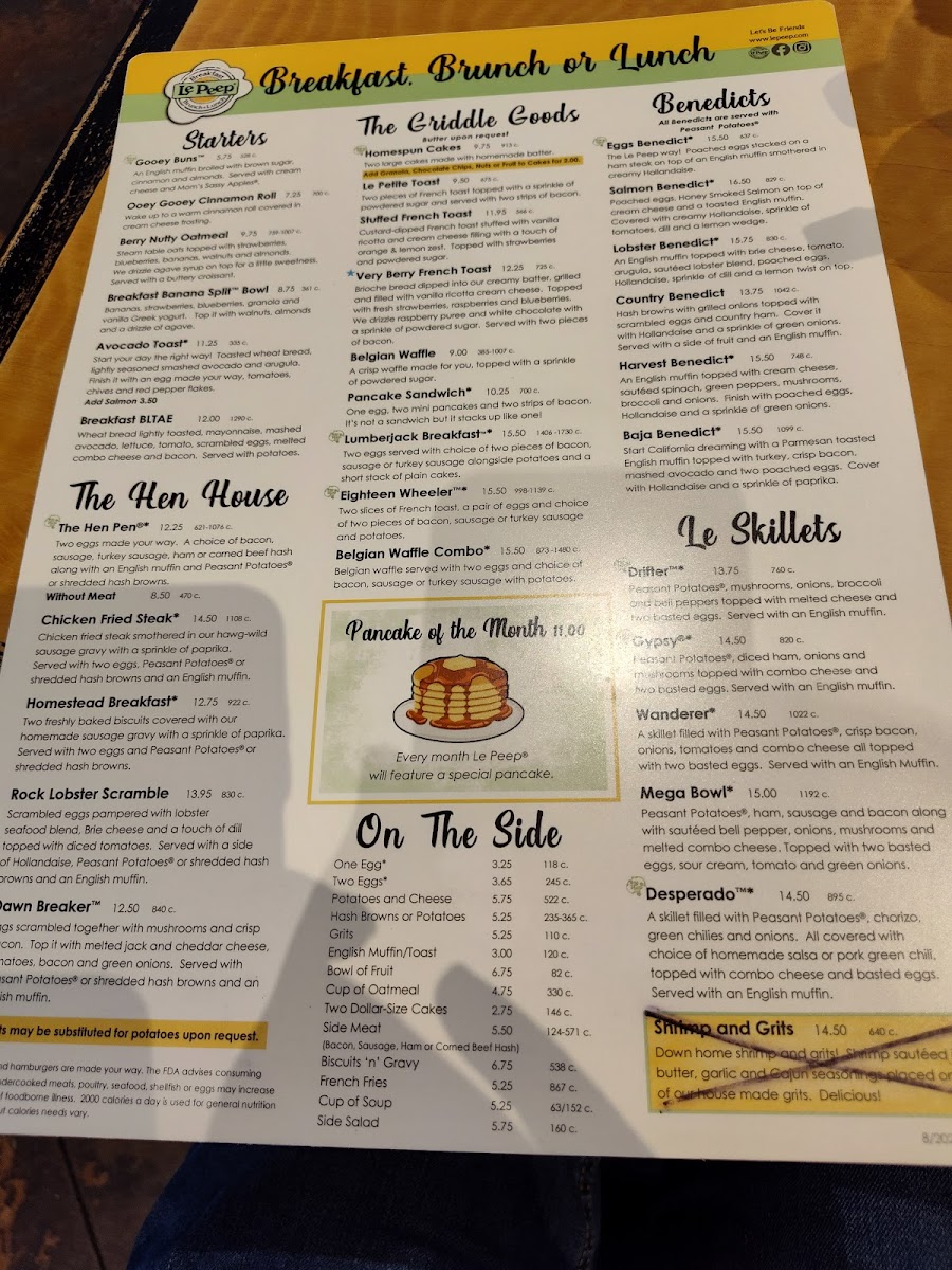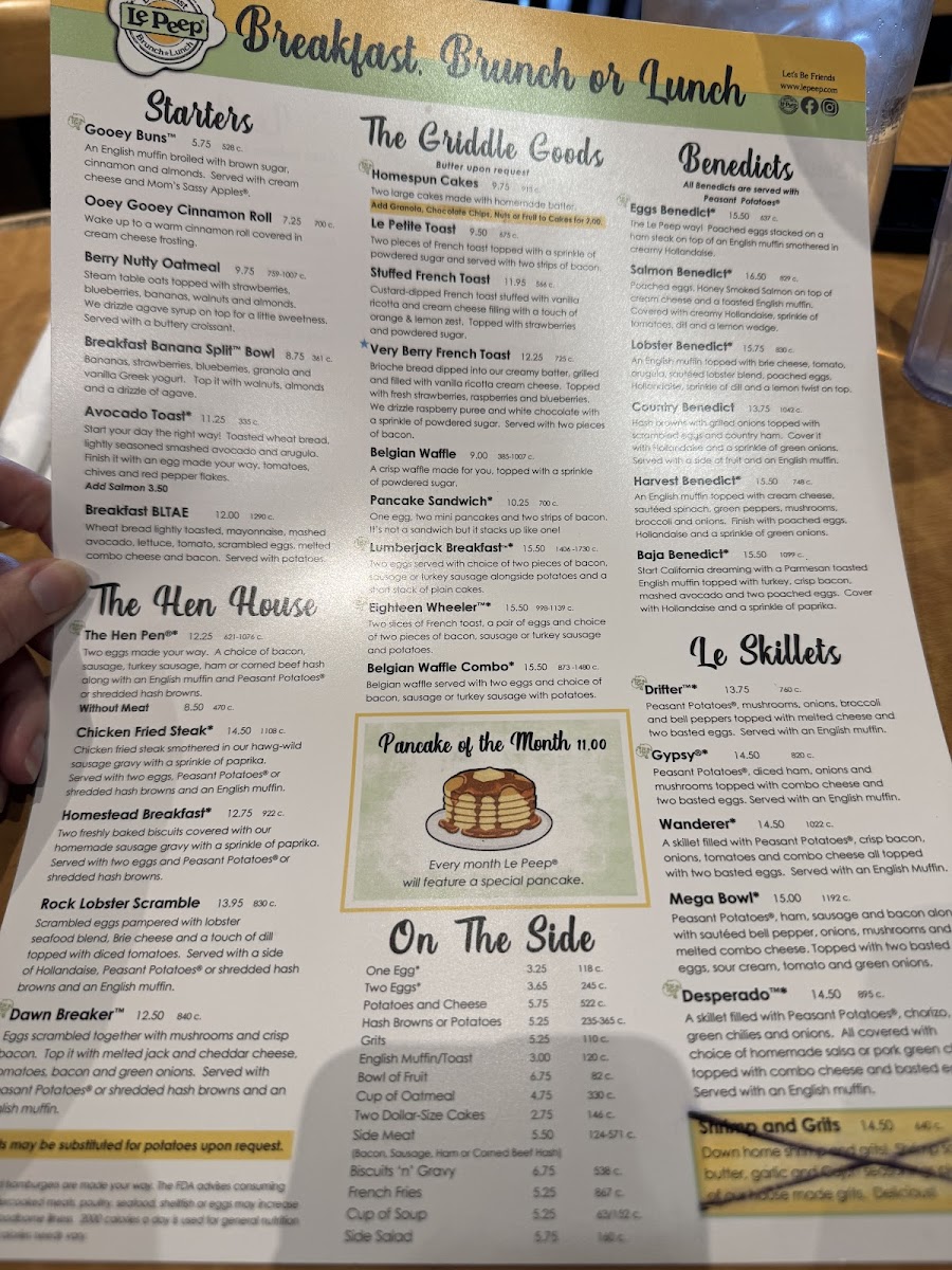 Ham, sausage and bacon, green peppers, onions, mushrooms, combo cheese and sour cream and chives. A le peep® creation.